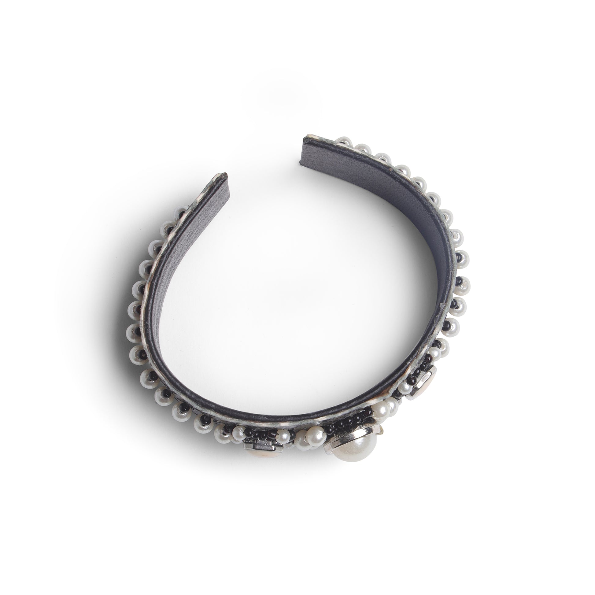 Grace your wrist with timeless elegance using the Amica Slexia Pearl & Beige Stone Embellished Textured Cuff Bangle. Designed with a sophisticated textured base, this open cuff bangle is beautifully adorned with luminous pearls and soft beige stone accents, creating a refined and luxurious look.