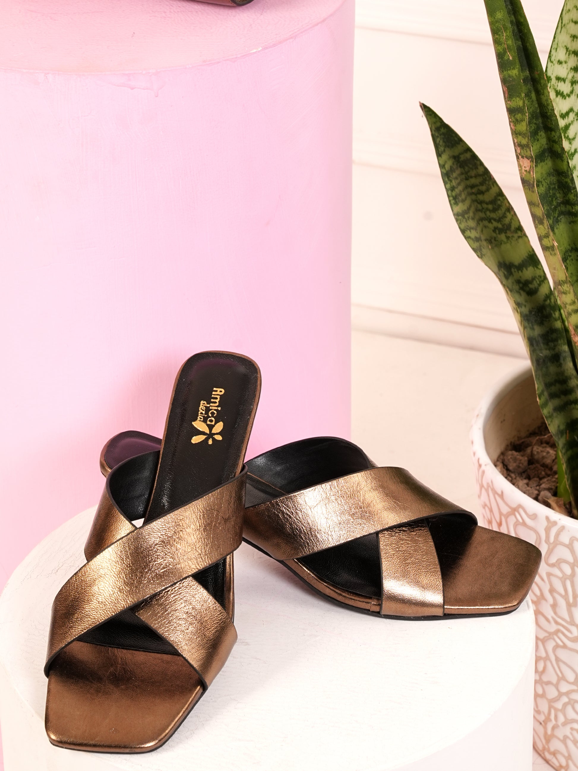 Add a touch of luxury to your look with the Amica Slexia Metallic Bronze Heels, crafted to combine timeless elegance with modern flair. Featuring a sleek criss-cross strap design with a stunning metallic bronze finish, these heels are the perfect choice for festive occasions, weddings, parties, and chic everyday styling.