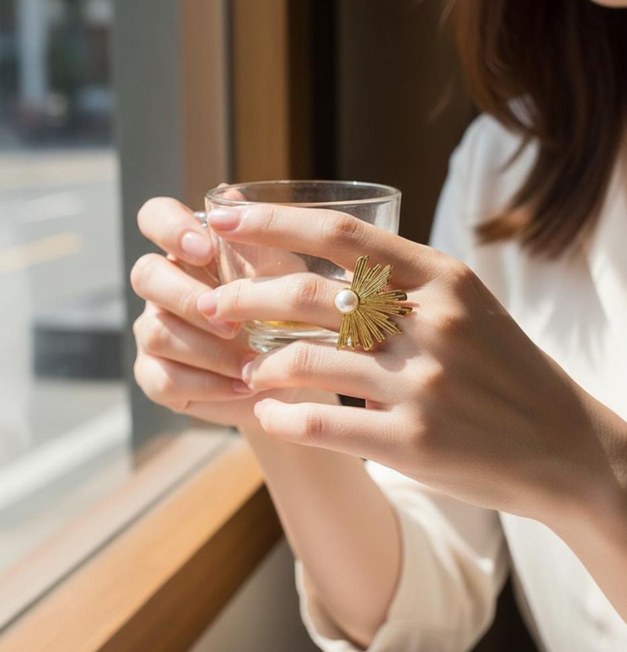DAZELIO Gold Sunburst Pearl Statement Ring for Women
