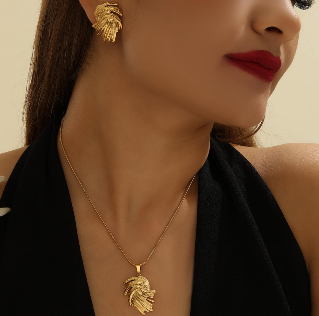 Elevate your everyday elegance with the Dazelio Golden Leaf Pendant Necklace, a timeless piece crafted for modern sophistication. Inspired by the natural beauty of cascading leaves, this pendant features a finely detailed, layered leaf design with a rich gold-tone finish that reflects understated luxury.