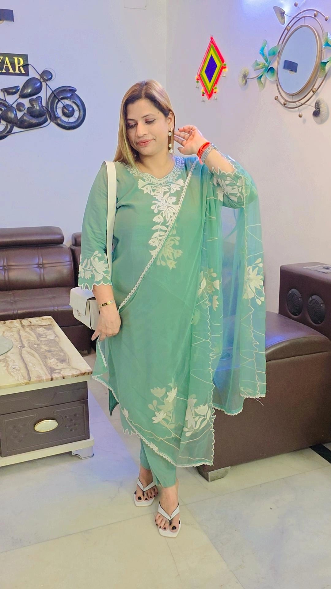 Step into timeless elegance with the Amica Slexia White Combo Set, thoughtfully curated for the modern woman who loves luxury with simplicity.